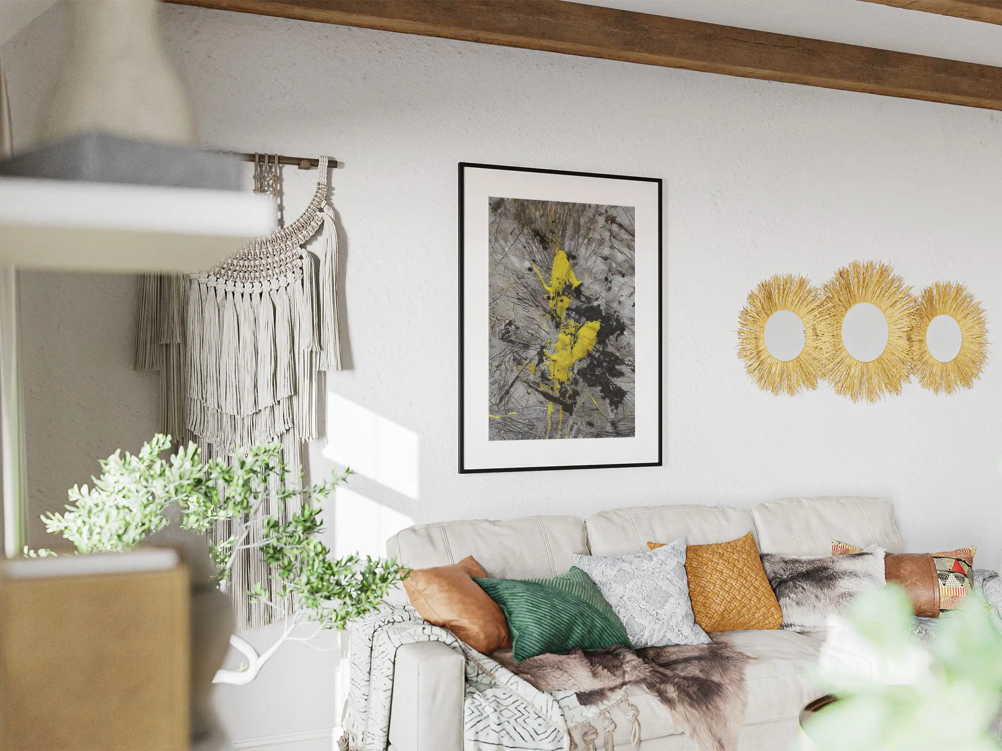 - Living Room: Mount a large size above the sofa for a stunning focal point.