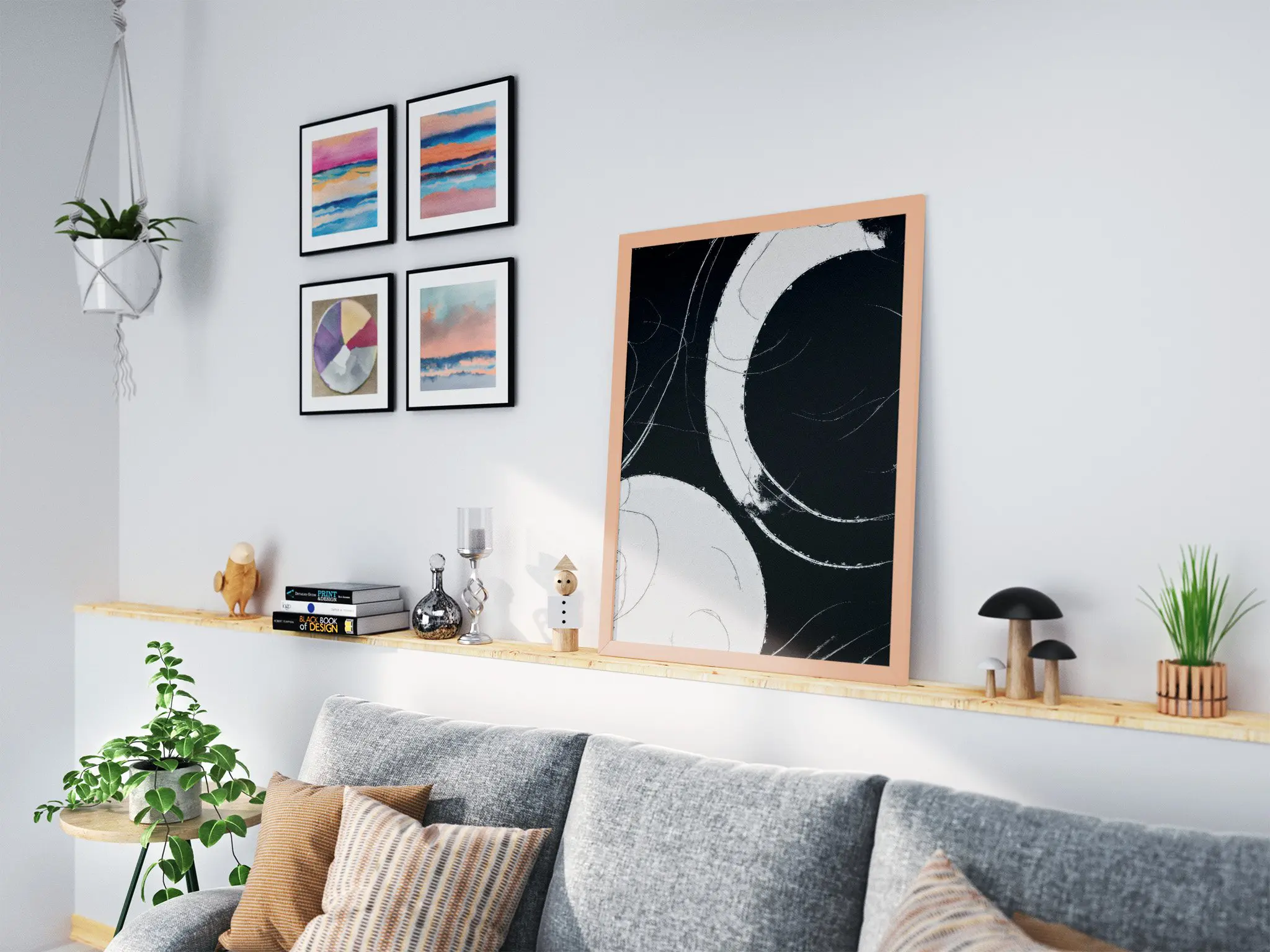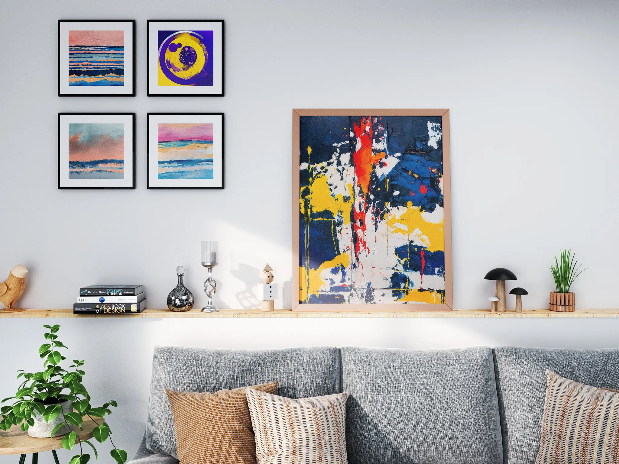 - Living Room: Mount a large size above the sofa for a stunning focal point.