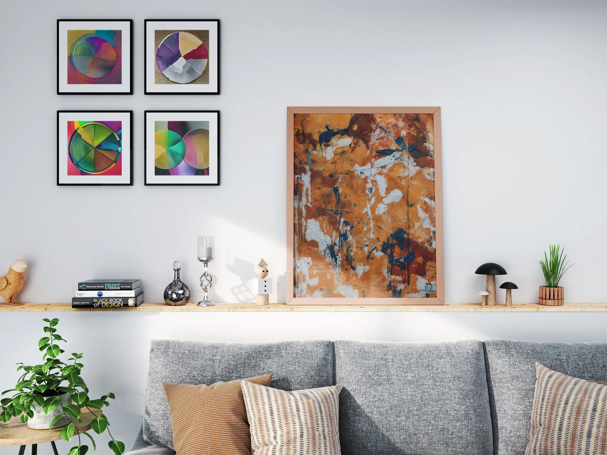 - Living Room: Mount a large size above the sofa for a stunning focal point.
